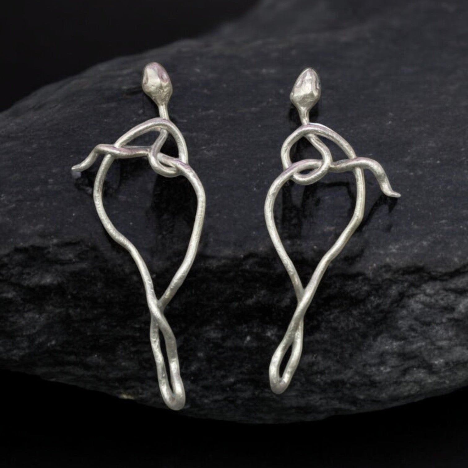 Handcrafted snake-shaped earrings, carefully sculpted with delicate details and subtle movement. Symbols of transformation, strength, and rebirth.