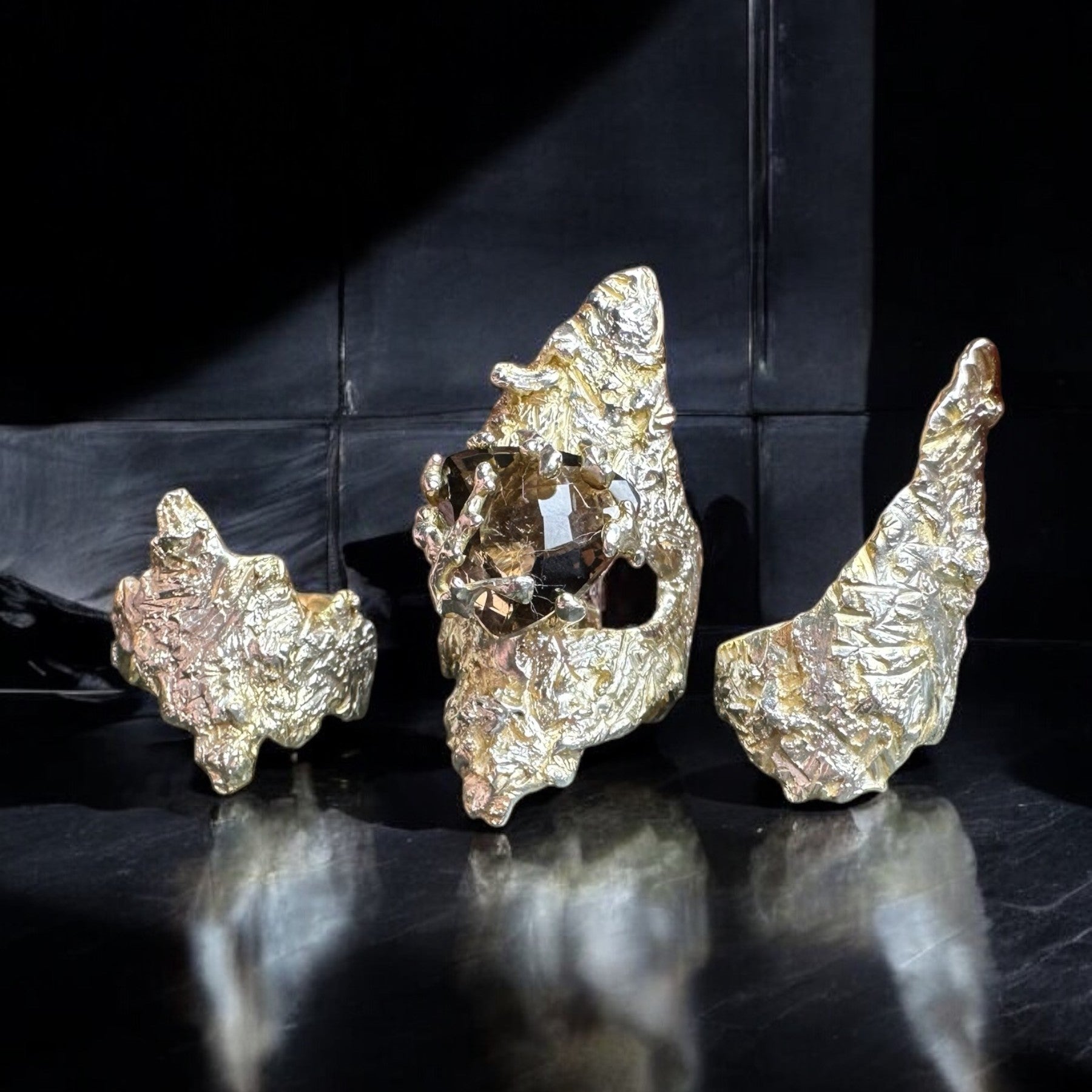 Materials – 925 sterling silver, 22K gold plating; smoky quartz (trillion).
