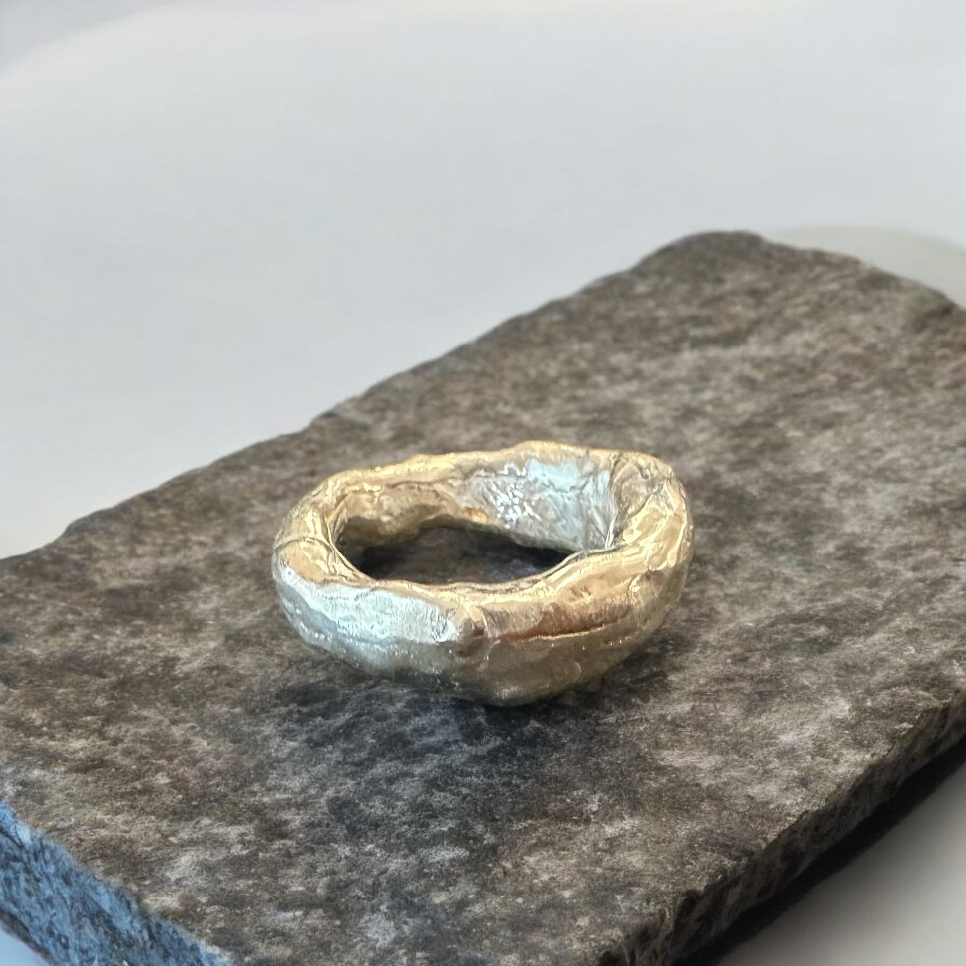 A handcrafted ring inspired by lava textures—raw, powerful, and intense. The metal appears frozen in the moment fire emerges from the earth.